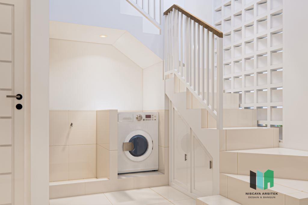 Area tangga dari lantai 2 menuju rooftop didesain dengan semaksimal mungkin. Tangga di desain berbentuk U dengan area void di tengahnya. Area void ini kemudian difungsikan untuk memaksimalkan pencahayaan dari atap menuju ruang di bawahnya. Sementara ruang bawah tangga ini dimaksimalkan menjadi area service, yaitu berupa ruang gudang dan ruang cuci sekaligus jemur.