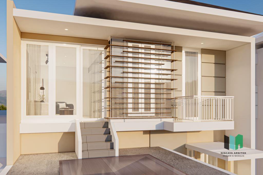 Selain itu, area atap carport yang sudah  berupa dak juga akan difungsikan oleh client sebagai area terbuka, sehingga dibutuhkan akses menuju atap carport yang memiliki perbedaan elevasi yang cukup besar dengan elevasi lantai 2. Sehingga, kami menambahkan tangga dari ruang keluarga lantai 2 menuju atap carport ini.